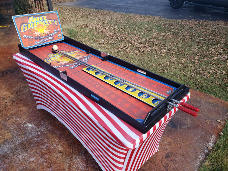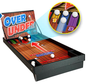 • Over Under Game - You get tries at rolling balls down the board into pointed slots. Not only do never know which way the ball will roll you need to get more than six points but less than 11 to win.