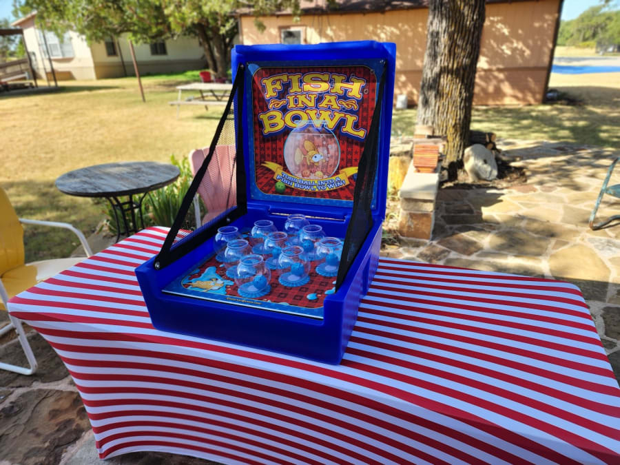 Our Fish-in-a-Bowl Game is available for rental in Arlington, Fort Worth, Weatherford, Mansfield, and many other areas. Simply give us a call at 817.304.5867 or book online using our quick and easy reservation system. Don't miss out on the opportunity to add this exciting carnival game to your next event!