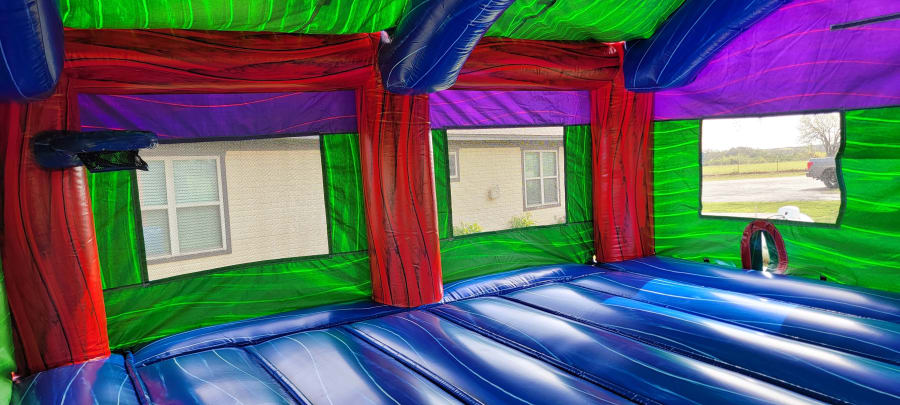 The vibrant colors of the Marble Mega Bounce House are truly eye-catching, beckoning children and adults alike to come and play. š„šØ Inside, there is ample space to engage in various activities. Kids can shoot hoops with the built-in basketball hoop, participate in coordinated games, or simply let their imaginations run wild. šš¤øāļø