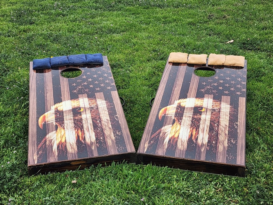 Bring on the stars, stripes, and friendly competition with our Americana Cornhole Boards. Hand‑crafted by a local Texas maker, these boards feature a striking American Eagle design that practically shouts freedom from across the yard. Whether you’re hosting a July 4th bash, a tailgate showdown, a neighborhood cookout, or you just like showing off your patriotic pride, these boards fit right in.