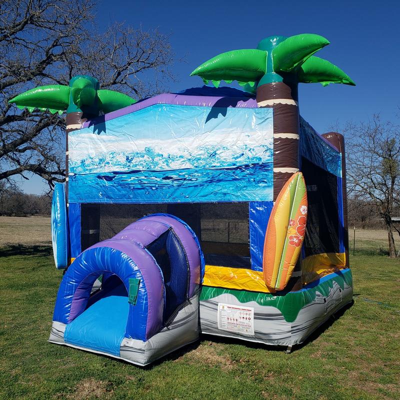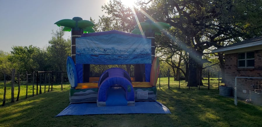 Make your next party unforgettable with the Cowabunga Misting Jump Bounce House. Reserve online or give us a call to lock in the fun!