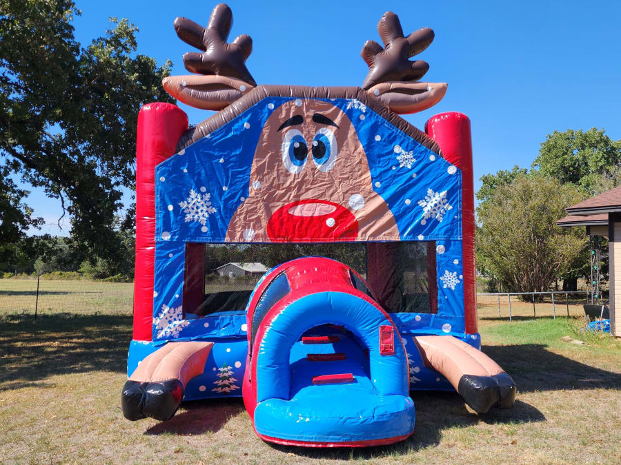 Christmas wouldn’t happen without Santa’s reindeer—and now you can have one at your party! The Reindeer Bounce House is a super-sized inflatable with a cheerful red-nose reindeer theme that’s colorful, fun, and packed with Christmas spirit.
