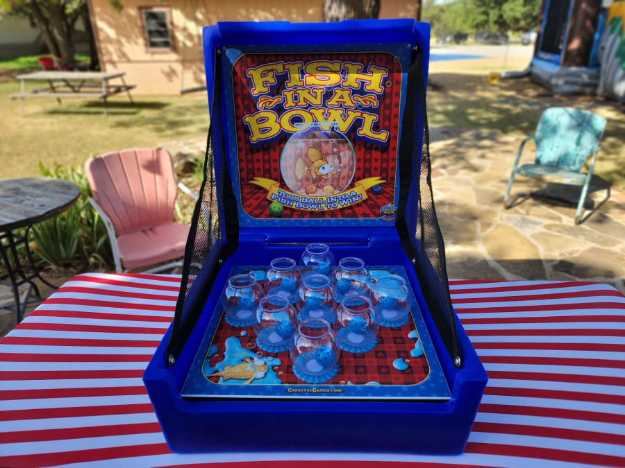 Our Fish-in-a-Bowl Game is available for rental in Arlington, Fort Worth, Weatherford, Mansfield, and many other areas. Simply give us a call at 817.304.5867 or book online using our quick and easy reservation system. Don't miss out on the opportunity to add this exciting carnival game to your next event!