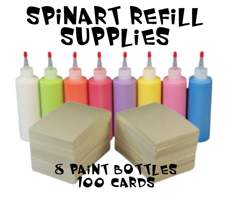 Expecting more guests at your event and need additional supplies for the SpinsArt machine rental? We have you covered. In this refill your get eight (8) more bottles of exciting colors of paint and another 100 - 5"x7" cards to make amazing art that your guests get to take home.