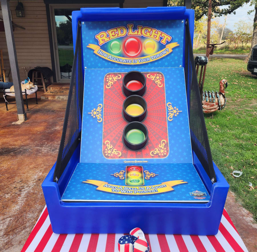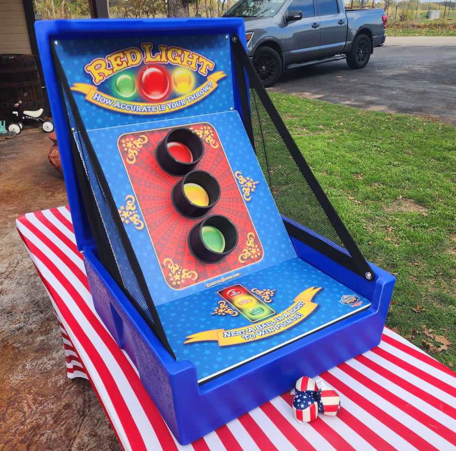 The Red Light Game can be used in various settings to suit your needs. It can be set up as a standalone game, allowing players to test their skills individually. Alternatively, you can place it on one of our tables with a vibrant carnival table cloth for an eye-catching display. For a complete carnival experience, consider pairing it with our big Carnival Game Booth, creating a fun-filled area that will attract guests and keep them entertained for hours.