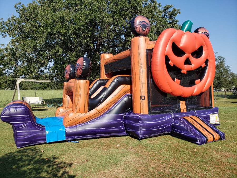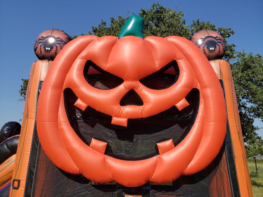 Bring the fun and excitement of the season to your next event with the Jack-O-Lantern Dry Bounce and Slide Combo. Available for delivery in [PAGE52]Mineral Wells, [PAGE41]Fort Worth, [PAGE42]Arlington, [PAGE50]Stephenville, Lipan, and more, it’s time to book this spooky inflatable for your fall festivities. Visit us online or give us a call today!