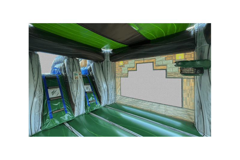 If your kids are obsessed with Minecraft, then the Mine Gamer combo is the ultimate party centerpiece! Inspired by the wildly popular sandbox game, this inflatable attraction brings the pixelated world to life—letting kids jump, climb, slide, and shoot hoops🏀 in an immersive environment filled with game-like graphics. Think of it as a real-world adventure where they can dodge creepers, race friends down dual lane slides, and build their own imaginative stories, just like in the game. Whether used wet💦 during summer or dry in cooler months, it guarantees hours of fun, creativity, and excitement.