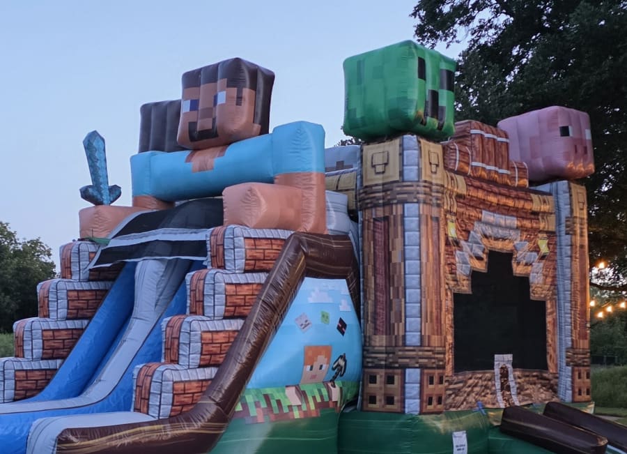 Minecraft is all about exploration, creativity, and overcoming challenges, and the Mine Gamer combo reflects just that! Kids can take on their own quests. scaling the climbing wall like a true adventurer, bouncing in the jump area as if they’re leaping across blocky landscapes, and sliding down the lanes like they’re escaping mobs in an underground tunnel. It’s a perfect way to bring the spirit of the game into the real world while encouraging teamwork, active play, and friendly competition. If you're looking to level up your party, Mr. P’s Party Rentals has your back—just book today and watch your kids have a blast building their own unforgettable experiences!