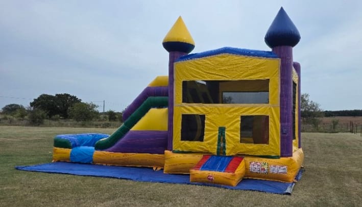 Turn any event into a party straight out of New Orleans with our Mardi Gras Bounce House Combo! With its dazzling combination of purple, yellow, and green, this inflatable is a lively centrepiece for birthdays, school festivals, church events, and more. Available for delivery across Stephenville, Mineral Wells, Fort Worth, Midlothian, Arlington, and surrounding towns, this combo unit is your ticket to nonstop celebration!
