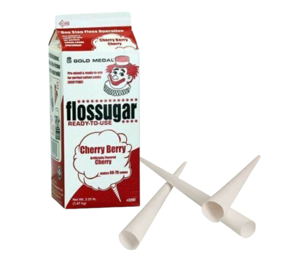 Make sure you have enough cotton candy for all your guests. After all, cotton candy is one of the most popular fun food rentals. And, mmmm, cherry too! The Cherry Berry (red) is as tasty as it sounds. This kit contains one box of Cherry Berry floss and your choice of 50 cones or bags.