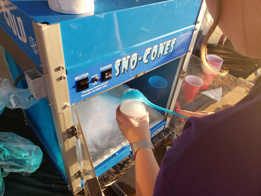 Most sno-cones are 4-6 oz. A 20 lb. bag of ice should produce 40-50 Sno-Cones.