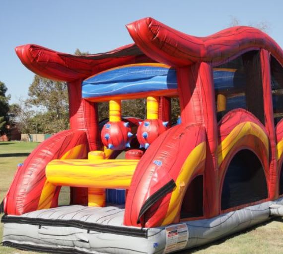 The Shadow Obstacle Course section six has incredible challenges for all ages. It's no easy ride going through the vertical beam, pop-ups, climbing challenge to jumping across inflated floor humps, all while dodging the spiked balls hanging down. Right, just a little bit tougher than some of those other obstacle courses you've been through. Add this to any of the other sections, or all together for an insane fun time.