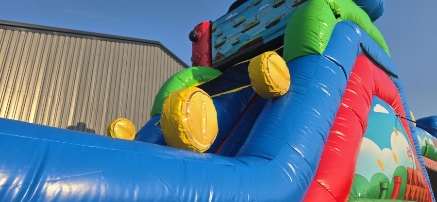 Ready to bring real-life video game action to your next party or event? The EZ Gaming Obstacle Course – 47' Wet/Dry is the ultimate inflatable adventure, available now for delivery in Fort Worth, Arlington, Midlothian, Stephenville, and Mineral Wells. With bold, arcade-style graphics and a 47-foot-long layout packed with challenges, this unit delivers high-energy excitement for gamers and thrill-seekers alike!