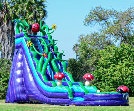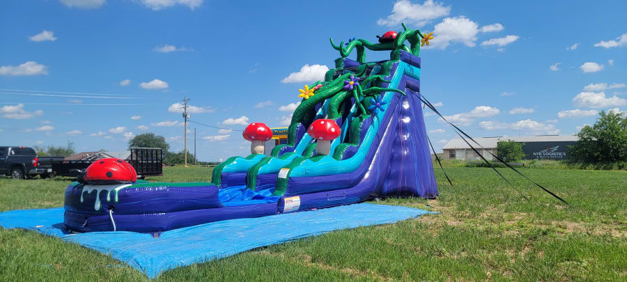 Mr. P's Party Rentals proudly offers the Enchanted Forest Wet/Dry Slide - 19' Single Lane in Dublin, Mineral Wells, Cleburne, Lipan, Santo, Granbury, and more areas. Make your event truly unforgettable with this captivating inflatable slide! ππ°