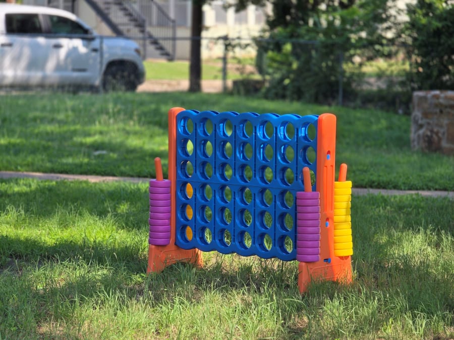 If you love Connect Four, wait until you see it blown up into a giant, party‑ready version. Our 4 to Score game brings bright pops of light blue, orange, and a hint of pink, making it as eye‑catching as it is fun. Players take turns dropping their colored discs into the oversized frame, racing to connect four in a row—horizontal or vertical—while trying to outsmart and out‑block their opponent.