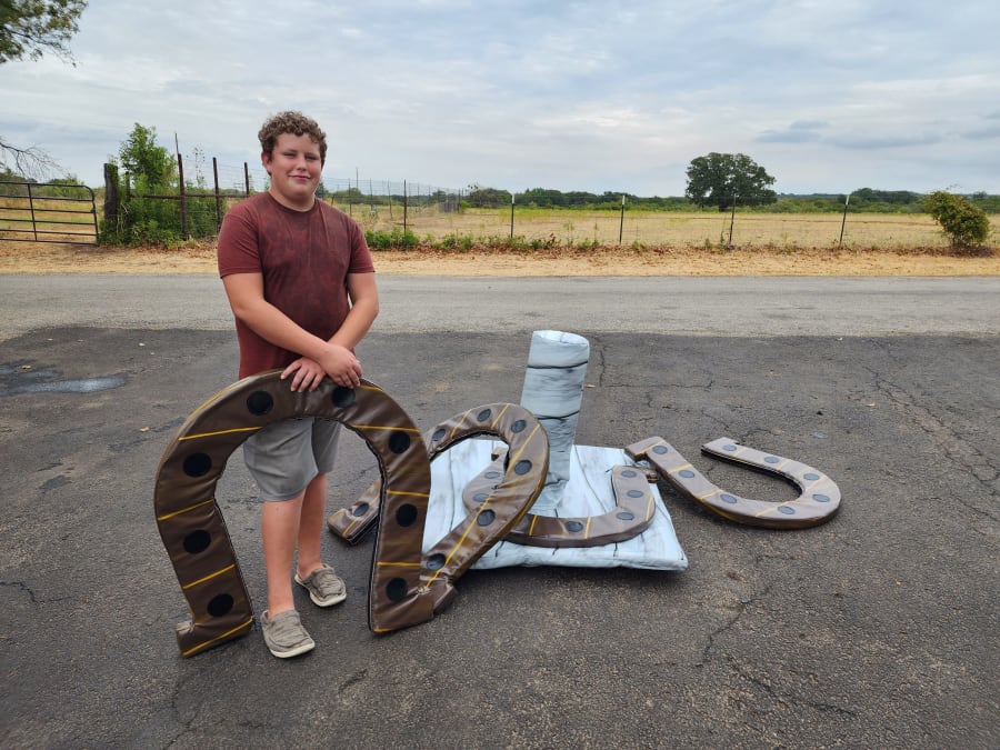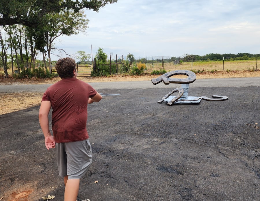 First, find an area with lots of room to set up the field and to ensure spectators will not be in the way of injury. Set the horseshoe pin 40' away from the throwing line. The distance can be adjusted for various ages.