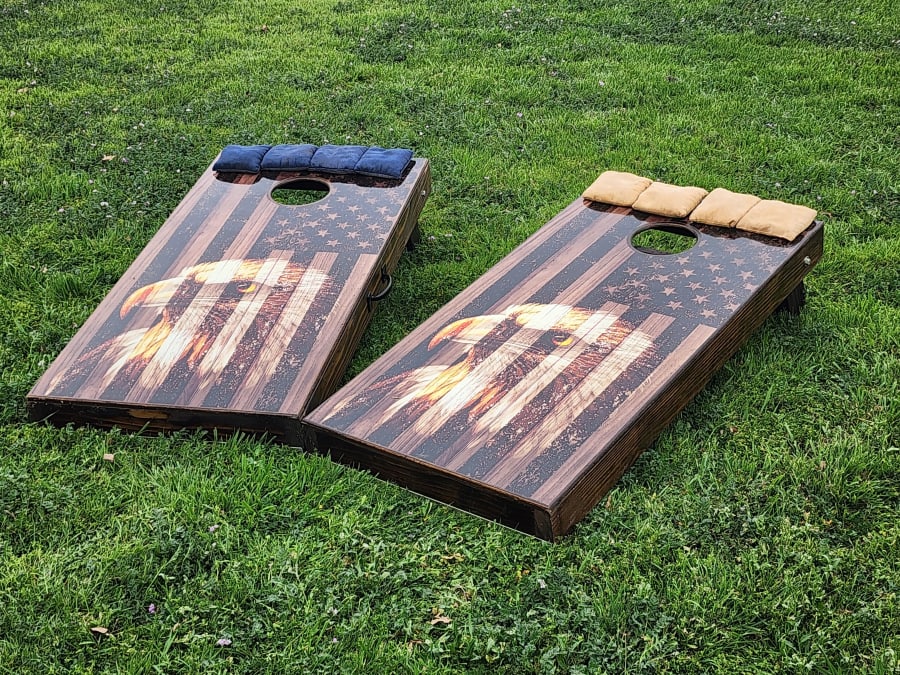 Bring on the stars, stripes, and friendly competition with our Americana Cornhole Boards. Hand‑crafted by a local Texas maker, these boards feature a striking American Eagle design that practically shouts freedom from across the yard. Whether you’re hosting a July 4th bash, a tailgate showdown, a neighborhood cookout, or you just like showing off your patriotic pride, these boards fit right in.
