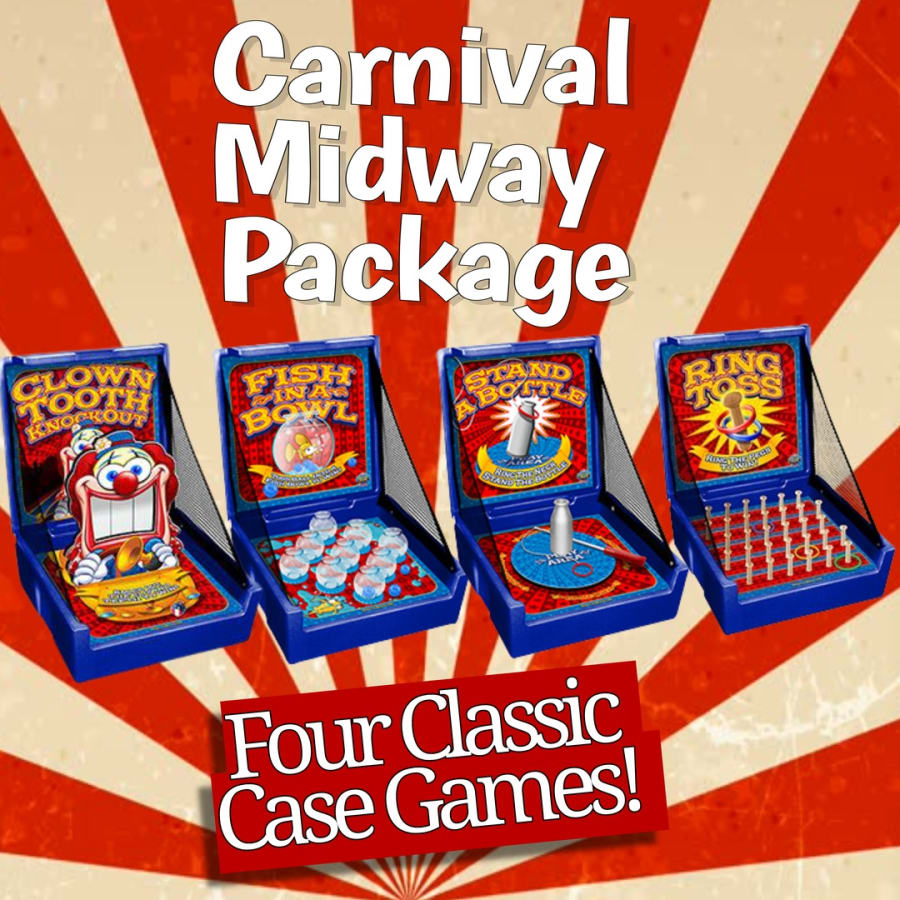 Transform your event into a vibrant celebration with our Midway Carnival Games—perfect for guests of all ages! These space-saving tub games are designed to sit neatly on tables (two per table), allowing one attendant to manage multiple games with ease. With their bold, colorful graphics, they instantly evoke the classic carnival or circus vibe.