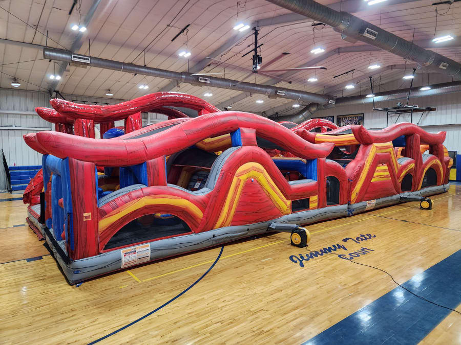 We like to call it a beast. It's five obstacle courses together as one. This one screams challenging fun. You'll get each of the Shadow courses that go sixty feet, make the 24' u-turn curve and on to the final sixty feet of awesome challenges. Each piece has different challenges keeping runners on their toes every step of the way. From vertical and horizontal beams, tunnels, underground holes, tires, swinging blocks, balls and spikes to X's and so much more. We're tired just listing the fun!